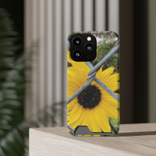Sunflower Behind A Fence | Phone Case With Card Holder for iPhone and Galaxy Phones