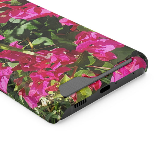 Phone Case With Card Holder with Hot Pink Bougainvillea Design