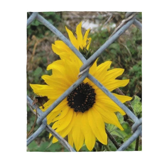 Cozy Velveteen Plush Throw Blanket with Sunflower Behind A Fence Design 30x40 50x60 60x80