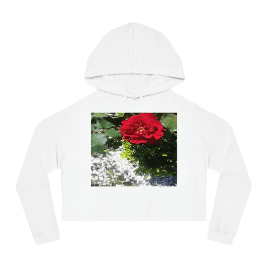 Women’s Cropped Hooded Sweatshirt with Europeana Red Rose Signature Print