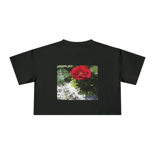 Women's Crop Tee with Europeana Red Rose Signature Print